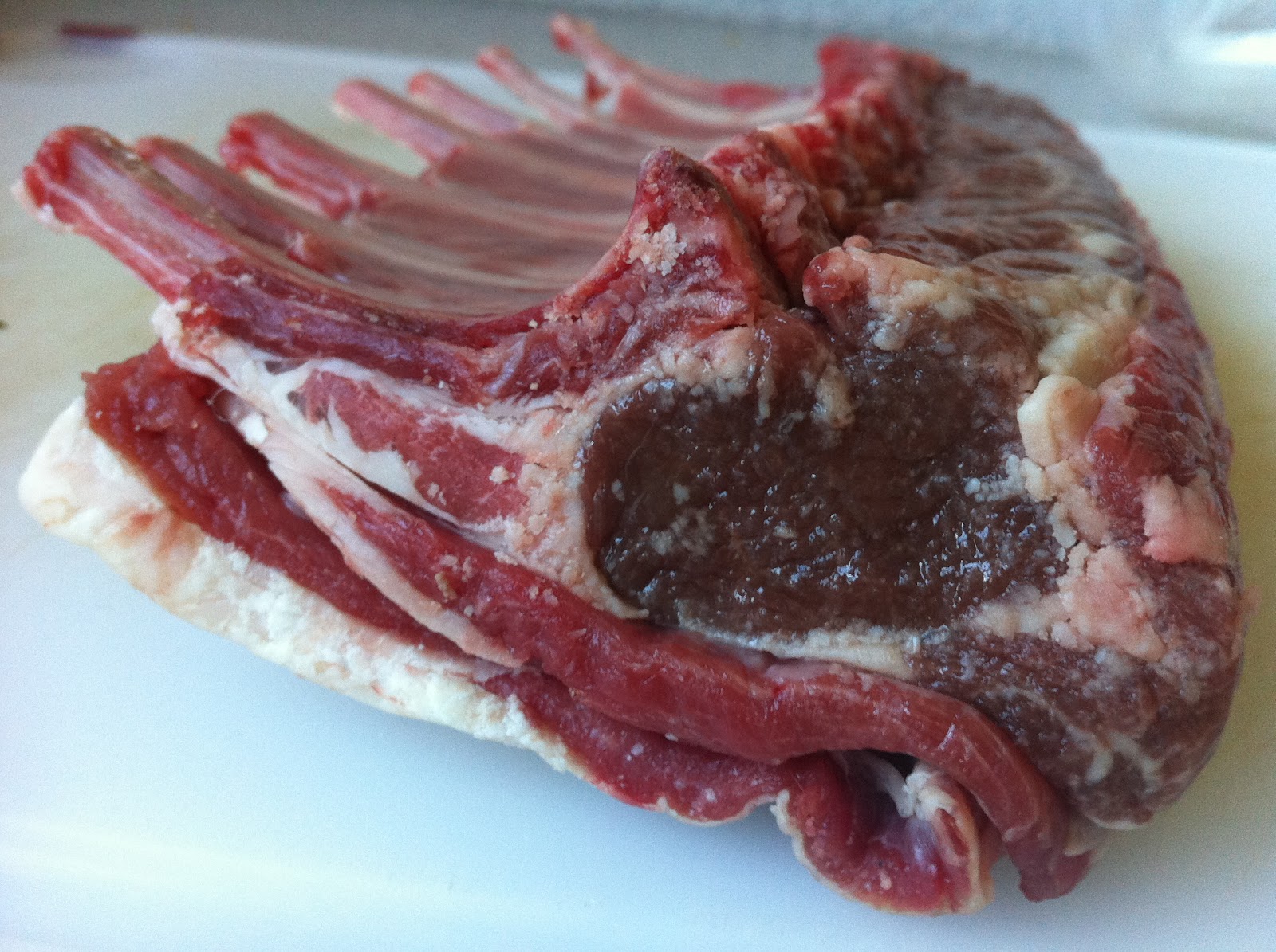 We decided on fillet steaks, and a rack of lamb. He showed me the difference between last year's aged lamb and what is fresh this season. He even asked if I wanted "those little hats" for the ends of the lamb bones.